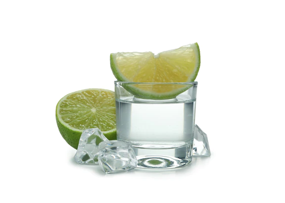 Pinga, limão, açúcar e gelo